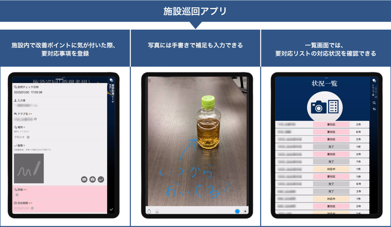施設の改善ポイントが一目でわかる施設巡回アプリ