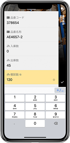倉庫のどこからでもスマホから棚卸リストを確認し、実在庫数を報告できます。